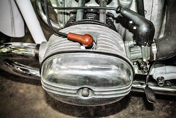 Вообще, мотоцикл был восстановлен с очень большой любовью, даже каждая видимая деталь двигателя начищена до блеска. Здесь тоже преобладает хром и шлифованный алюминий.
